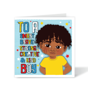 Make his birthday unforgettable with our Blindian (Black & Asian) boy birthday card. Celebrate the beauty of blended families while inspiring your son to reach for the stars.