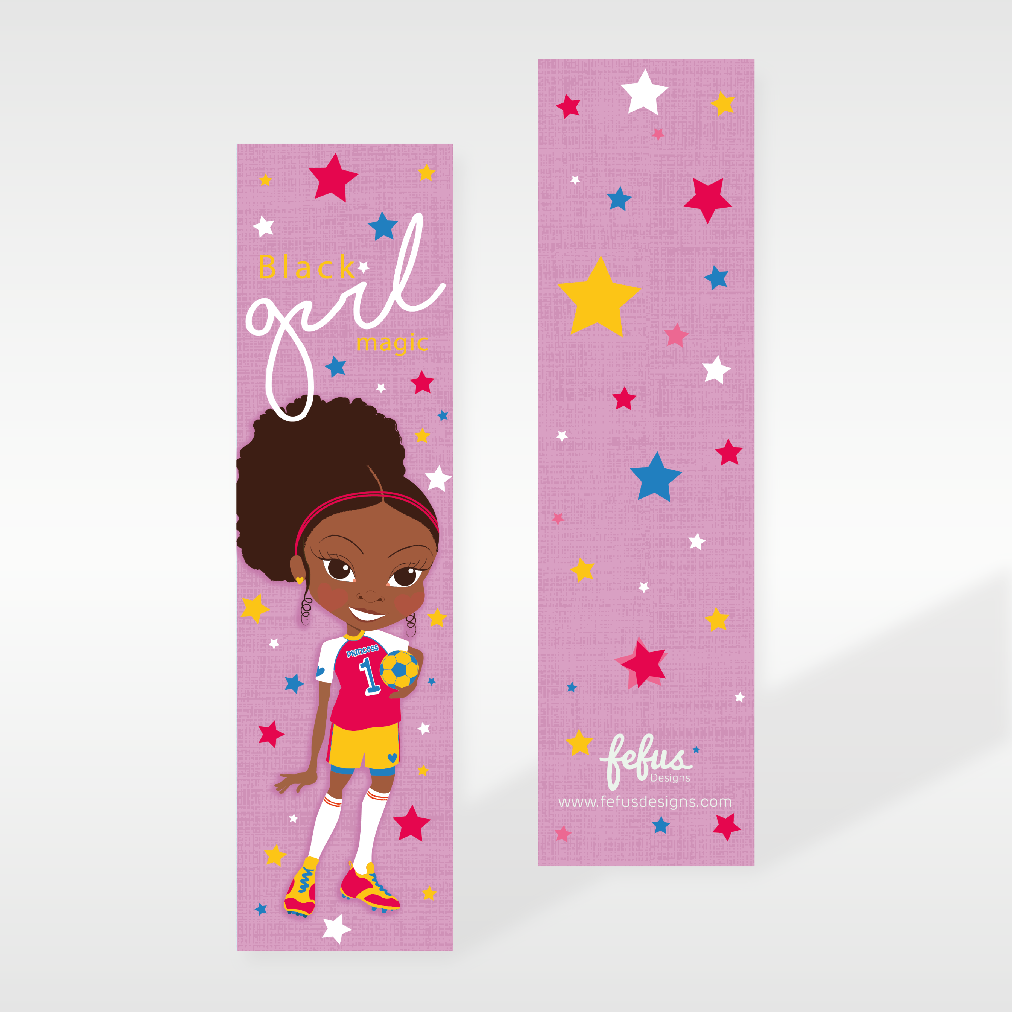 Lela - Football Girl - Black Girls Bookmarks | Fefus designs