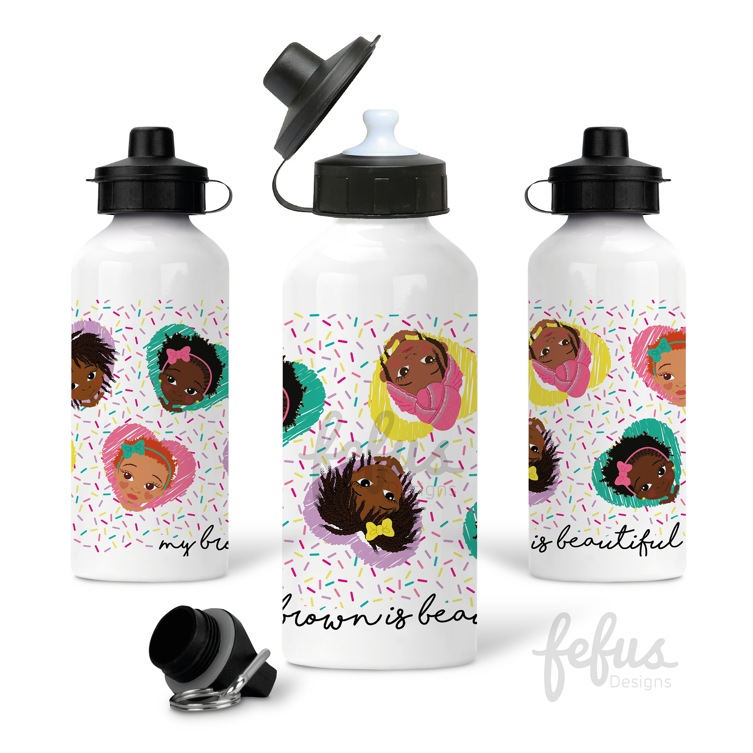 Explore our collection of water bottles and mugs featuring diverse characters, focusing on Black and Brown girl representation. With fun, bold designs celebrating natural beauty, these products aim to empower children of colour, instilling self-pride and love for their heritage. Perfect for school, sports, or home, our hand-drawn designs inspire confidence and pride. Whether for everyday use or as a thoughtful gift, our premium aluminium water bottles and ceramic mugs make a statement of empowerment and joy.