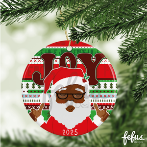Black Santa Claus Christmas Bauble, kids Ceramic Christmas Ornament, Custom Gift, Black Kids Bauble, Hanging Christmas tree ornament.
