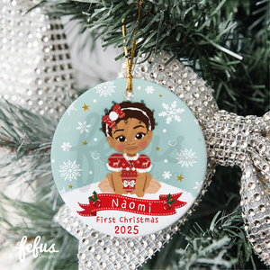 Personalised Brown Baby Girls 1st Christmas Bauble | Fefus Designs