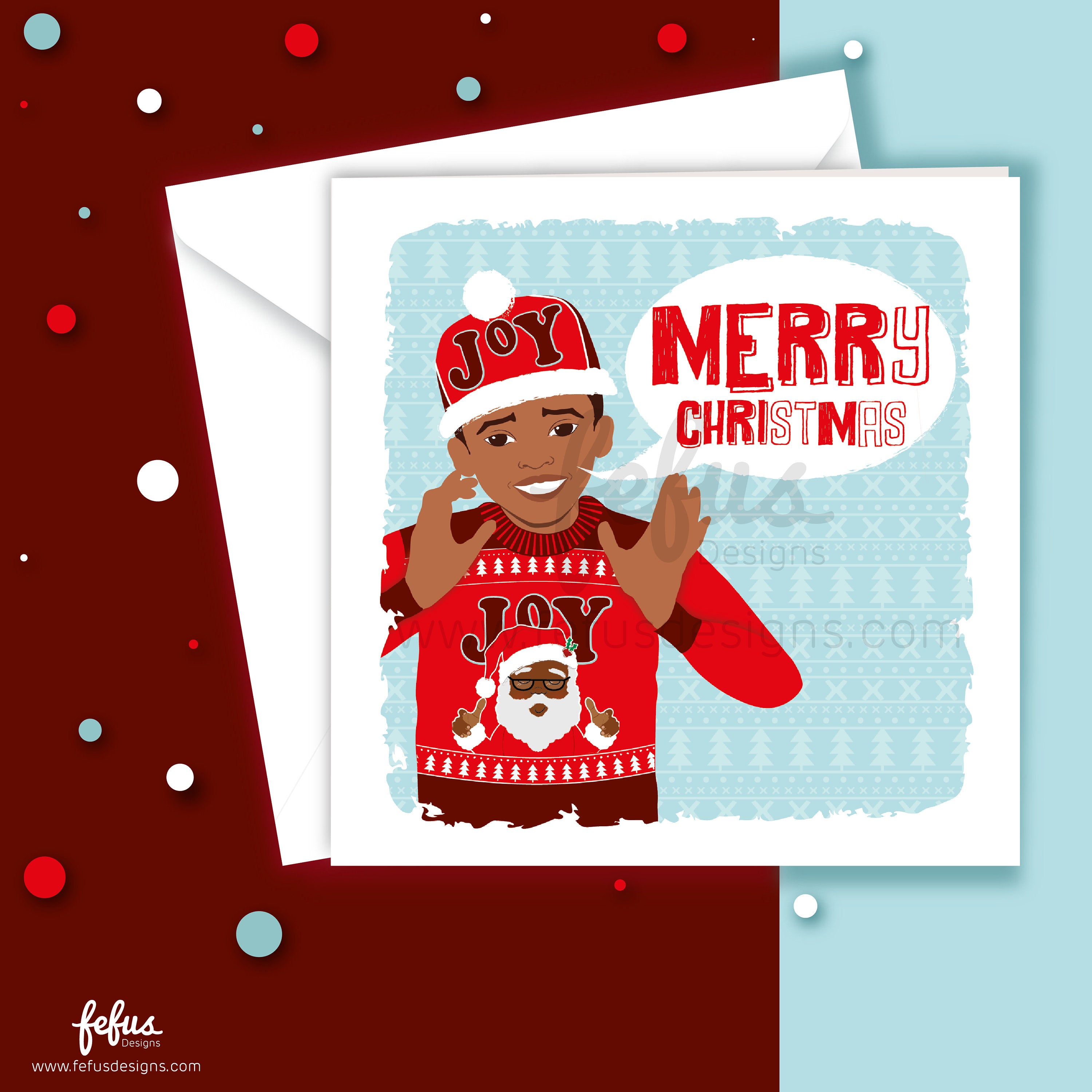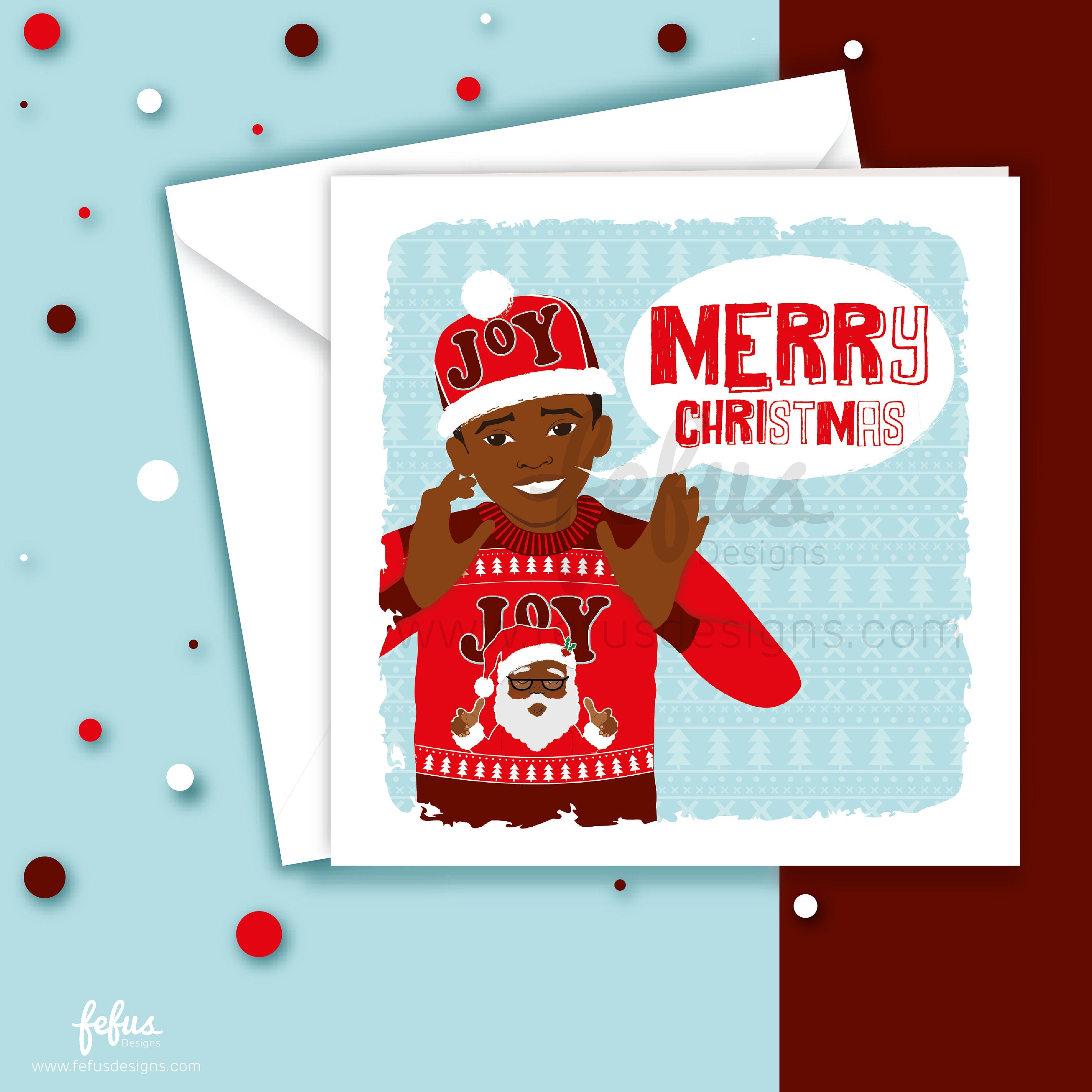 Black Santa Joy Christmas Card – Diverse Inclusive Holiday Greeting | Fefus Designs
