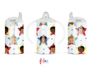Give your little one something they'll love to show off with this Brown Boy Joy sippy cup. This tumbler is sure to be a hit with any toddler, featuring a gorgeous illustration of super cute brown boys & stars pattern.