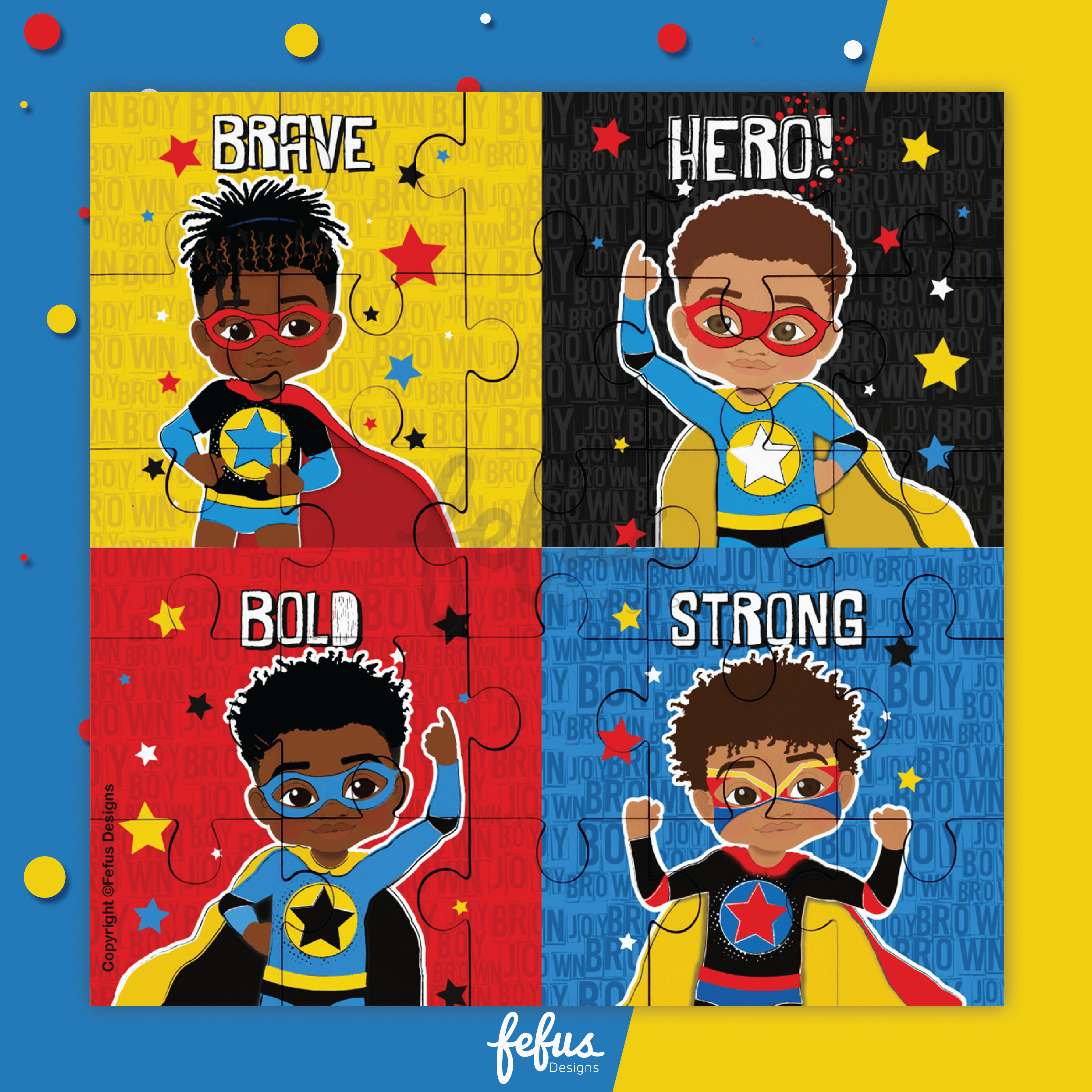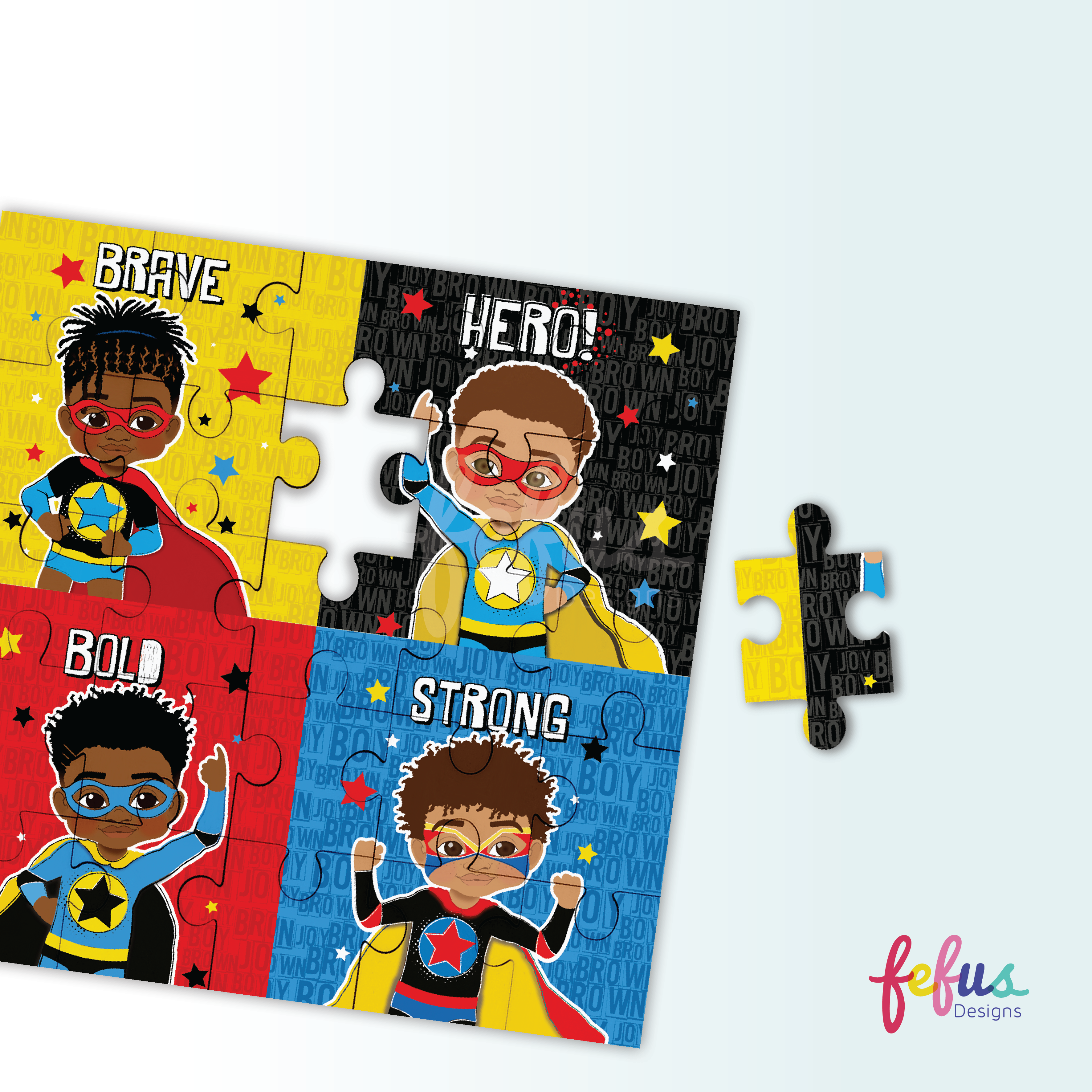 Black Girl Superhero Wooden Jigsaw Puzzle - 25-Piece Square MDF Puzzle | Fefus Designs
