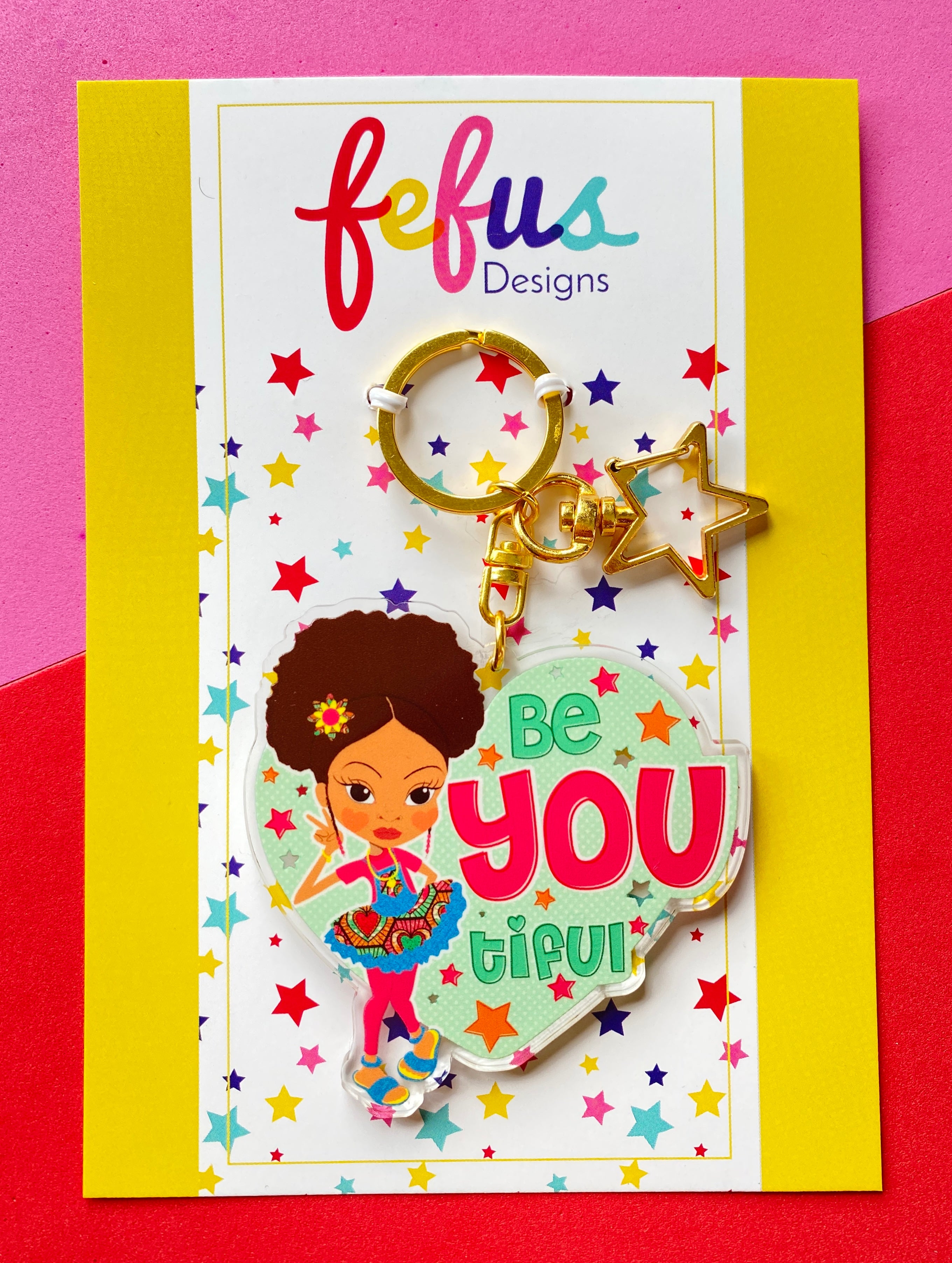 Yasmin - Be You Tiful | Keyring/ Bag Charm | Fefus Designs