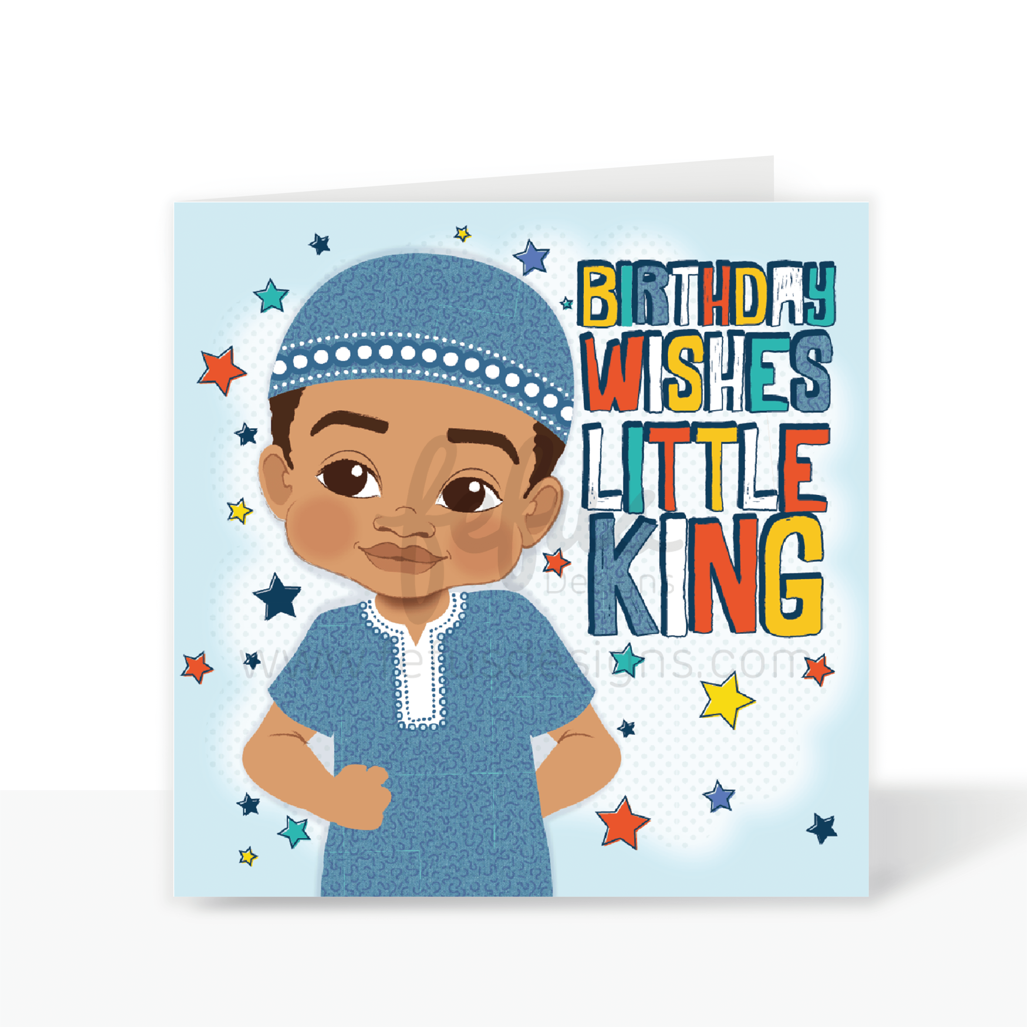 Black Muslim Little King - Black Boys Birthday Card | Fefus designs