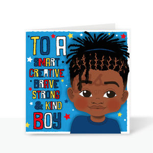 What better way to celebrate his special day than with this super cute & colourful Black Rastafarian Boy birthday card. Our cards are the perfect addition to a gift or just sent alone, for a little one who wants to see someone who looks just like themselves!