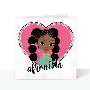 Zuri - Afronista Pigtails - Black Kids Greetings Card | Fefus designs