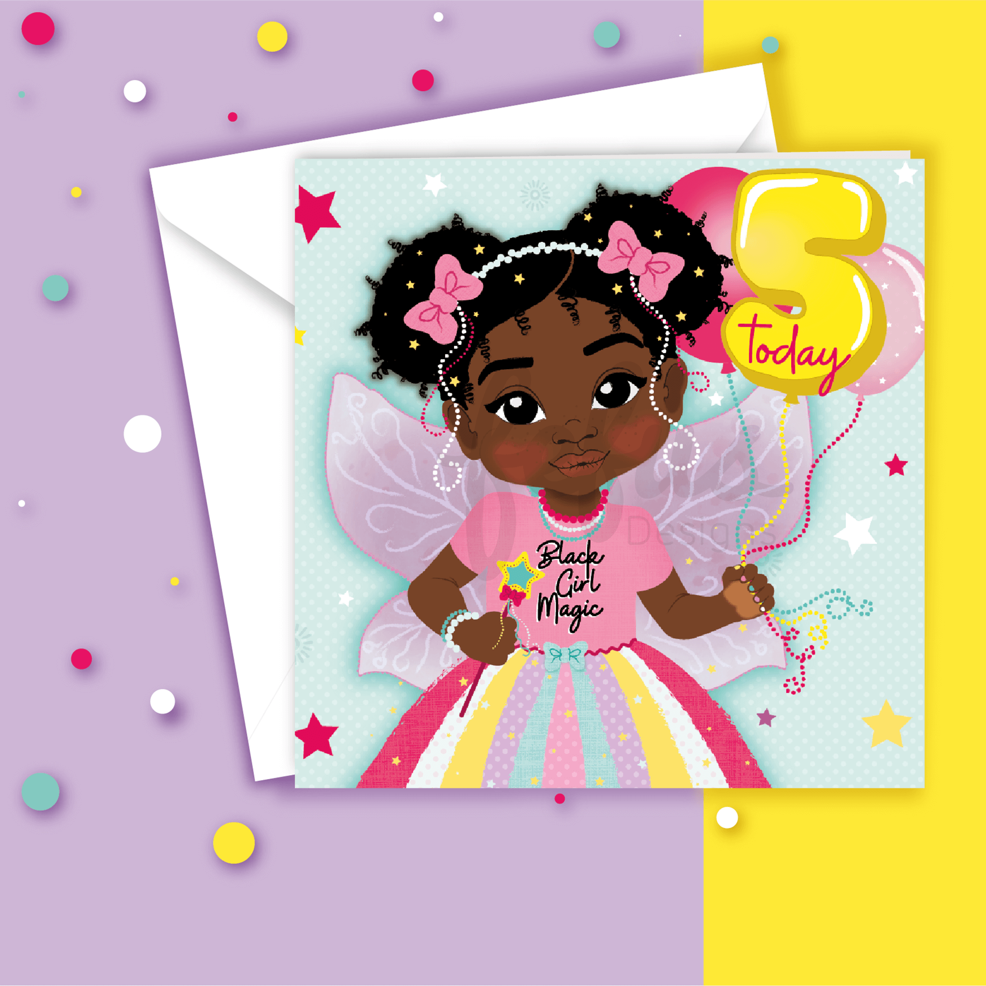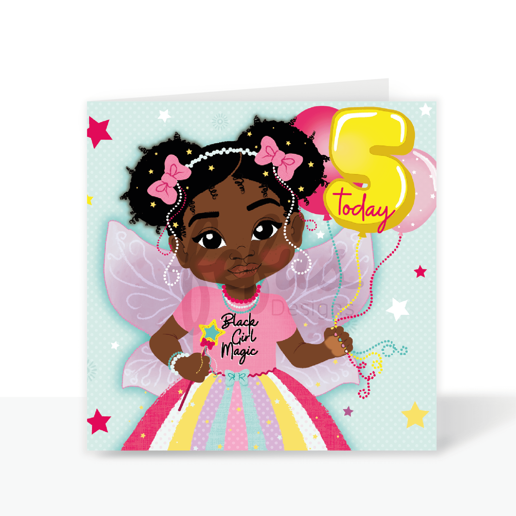 Fifth Birthday Black Fairy Girl - Brown Girl Birthday Card | Fefus Designs