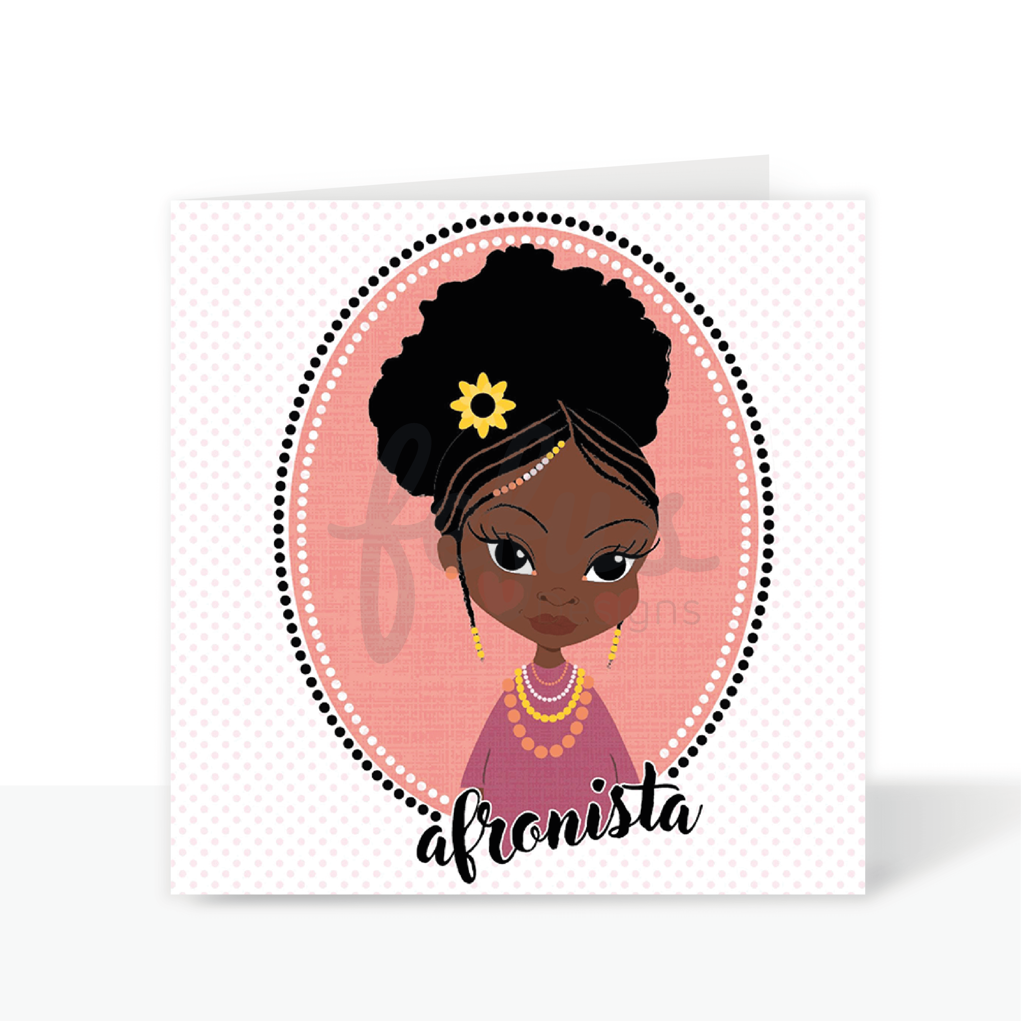 Kadija - Afronista PUFF GIRL - Black Kids Greetings Card | Fefus designs